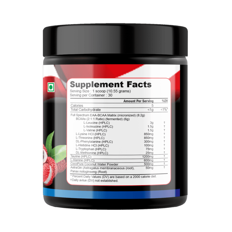 Produced in a GMP-certified facility, this EAA + BCAA powder is free from artificial additives and fillers. Enjoy the exotic taste and powerful benefits of EAA + BCAA – Litchi Flavor to fuel your fitness journey.